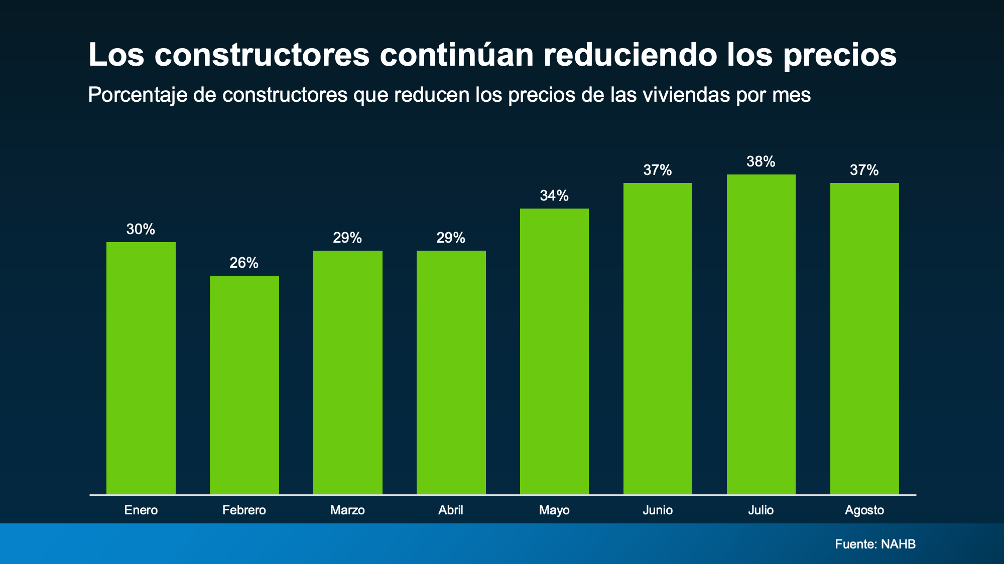 Uno de los incentivos más comunes que ofrecen en este momento es ajustar el precio. Según NAHB, casi el 40 % de los constructores están haciendo recortes de los precios (ver la gráfica a continuación):