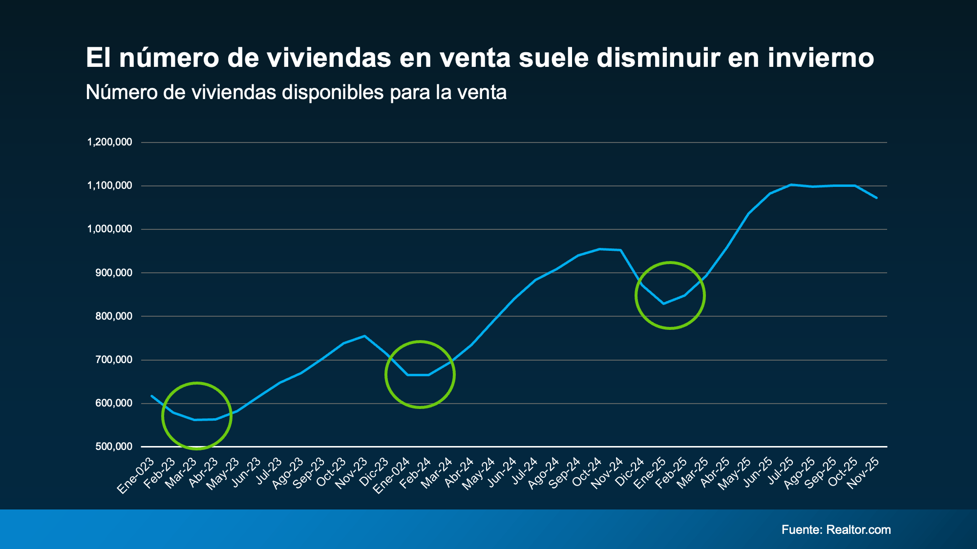 La historia muestra que el número de viviendas en venta tiende a disminuir durante los meses de invierno. Es una tendencia que se predice casi todos los años.