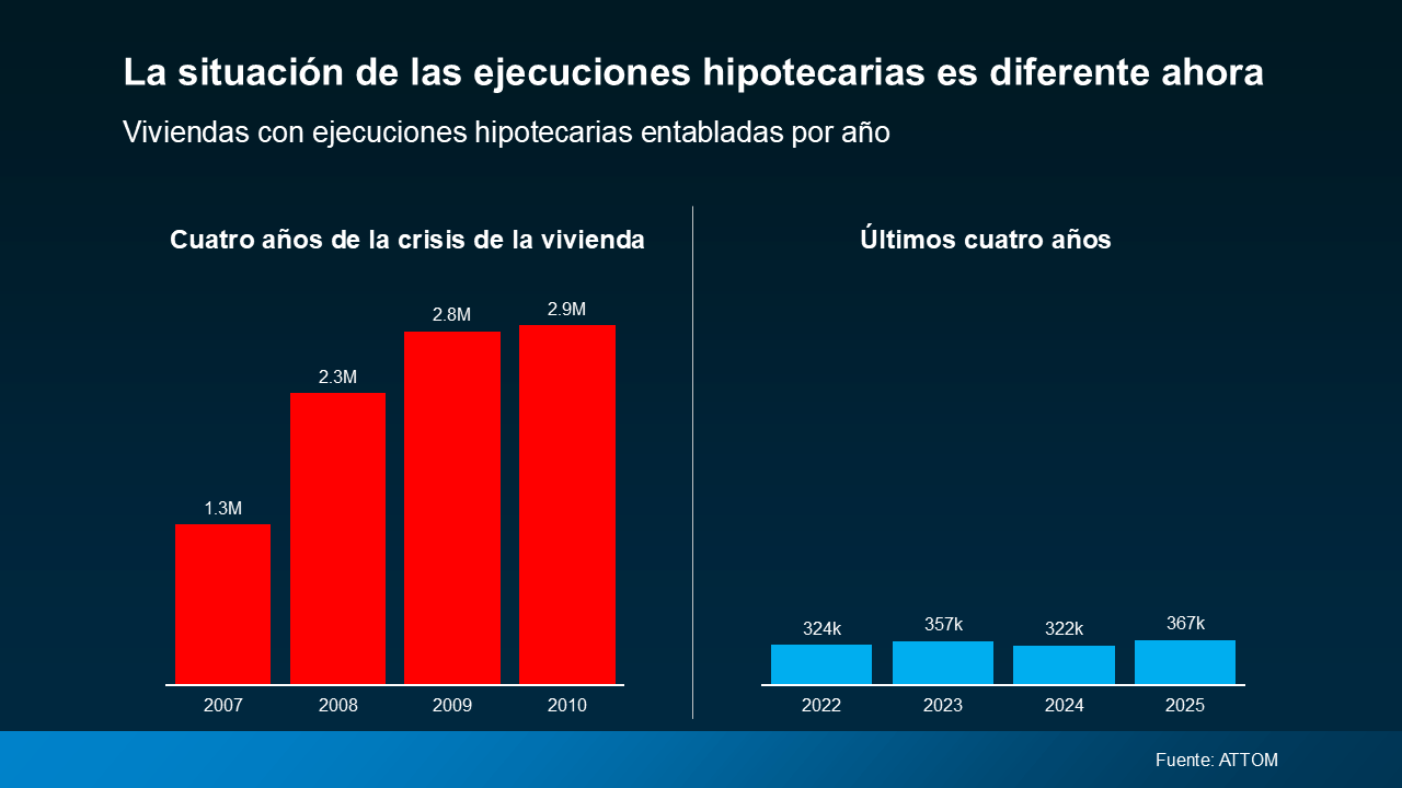 “La actividad de las ejecuciones hipotecarias aumentó en el 2025, reflejando una normalización continua del mercado de la vivienda tras varios años de niveles históricamente bajos… Aunque las ejecuciones hipotecarias entabladas, iniciadas y los embargos aumentaron en comparación con el 2024, la actividad de las ejecuciones hipotecarias sigue muy por debajo de las normas previas a la pandemia y es una fracción de lo que vimos durante la última crisis de la vivienda… El repunte de hoy está impulsado más por la recalibración del mercado que por la preocupación generalizada de los propietarios, con posiciones sólidas en plusvalía y un préstamo más disciplinado que continúan limitando el riesgo”.
